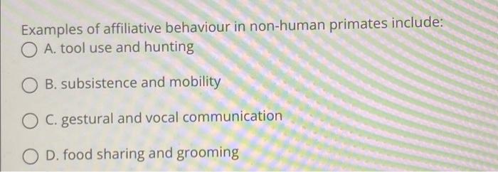 Examples of affiliative behaviour in non-human | Chegg.com