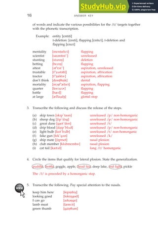 Answer Key To The Exercises Of Applied English Phonology | PDF