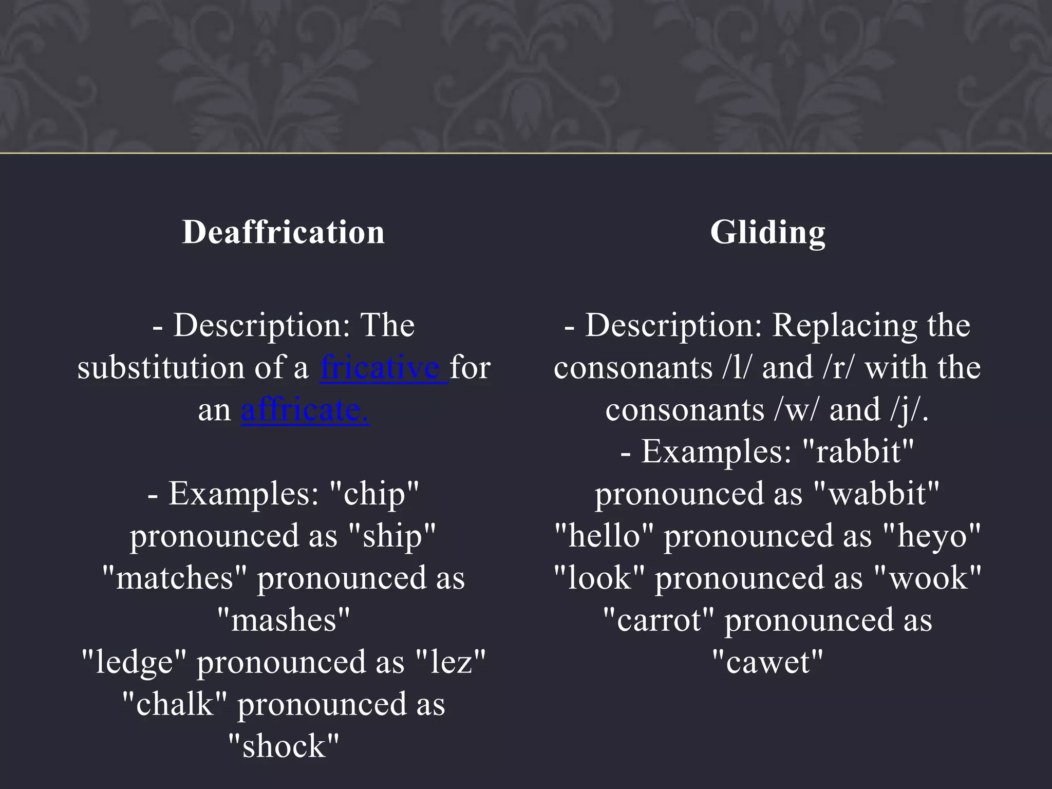 DEAFFRICATION - Phonological Processing - Assessment - Intervention