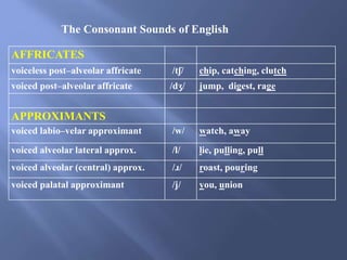 SOUND CLASSES The system of English consonants their