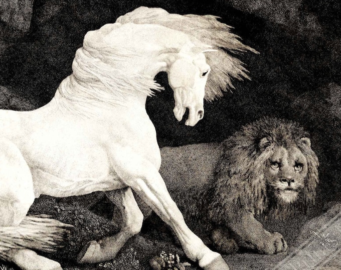 Vintage Frightened Horse Poster A Horse Affrighted by A Lion - Etsy