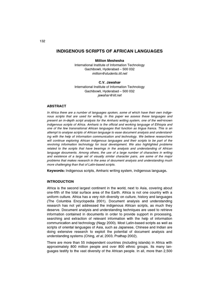 Meshesha Jawahar 2007 Indigenous Scripts of African Languages | PDF