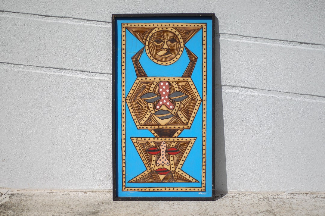 Vintage Painting Painted Wood Panel, Signed Painting, African Mask ...