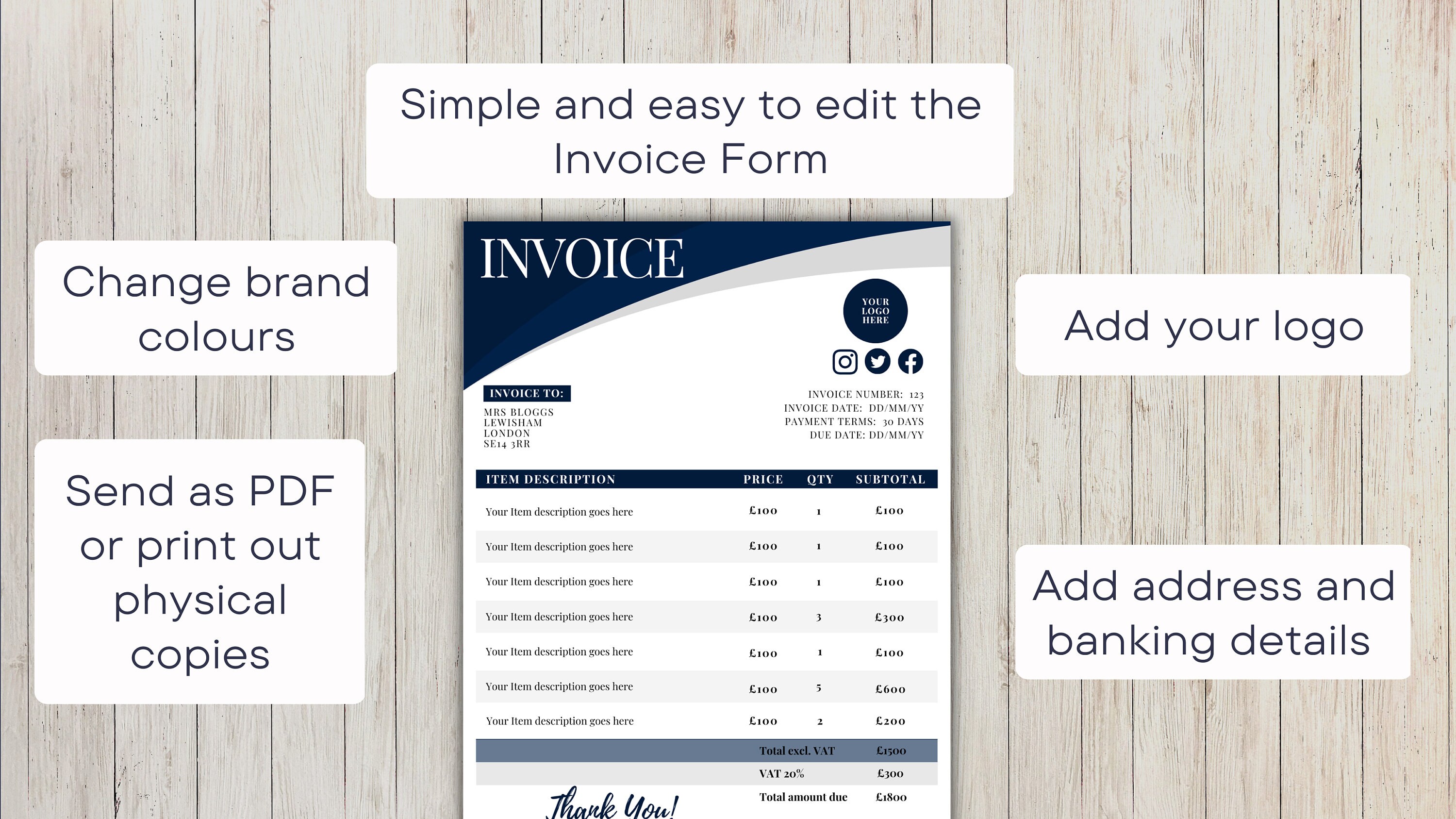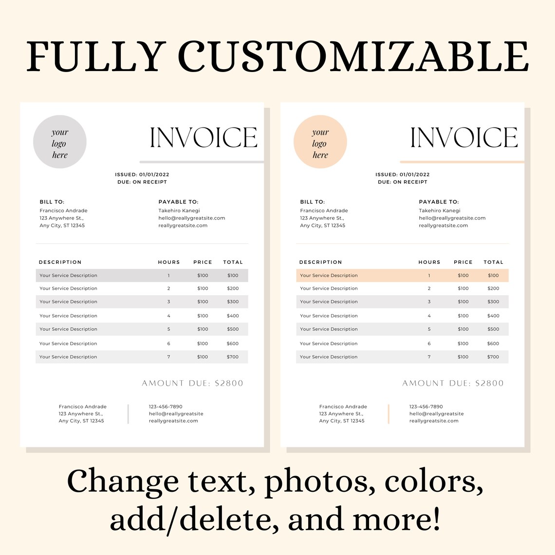 Invoice Template, Invoice Template PDF, Custom Invoice, Editable ...