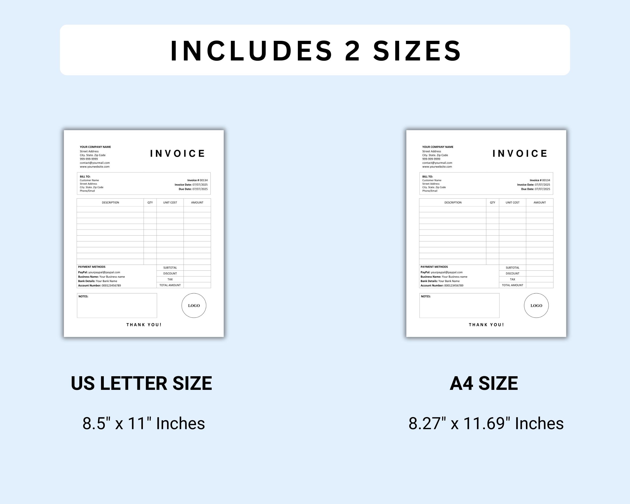 A4 Custom Invoice Template, Invoice Template, Editable Invoice ...