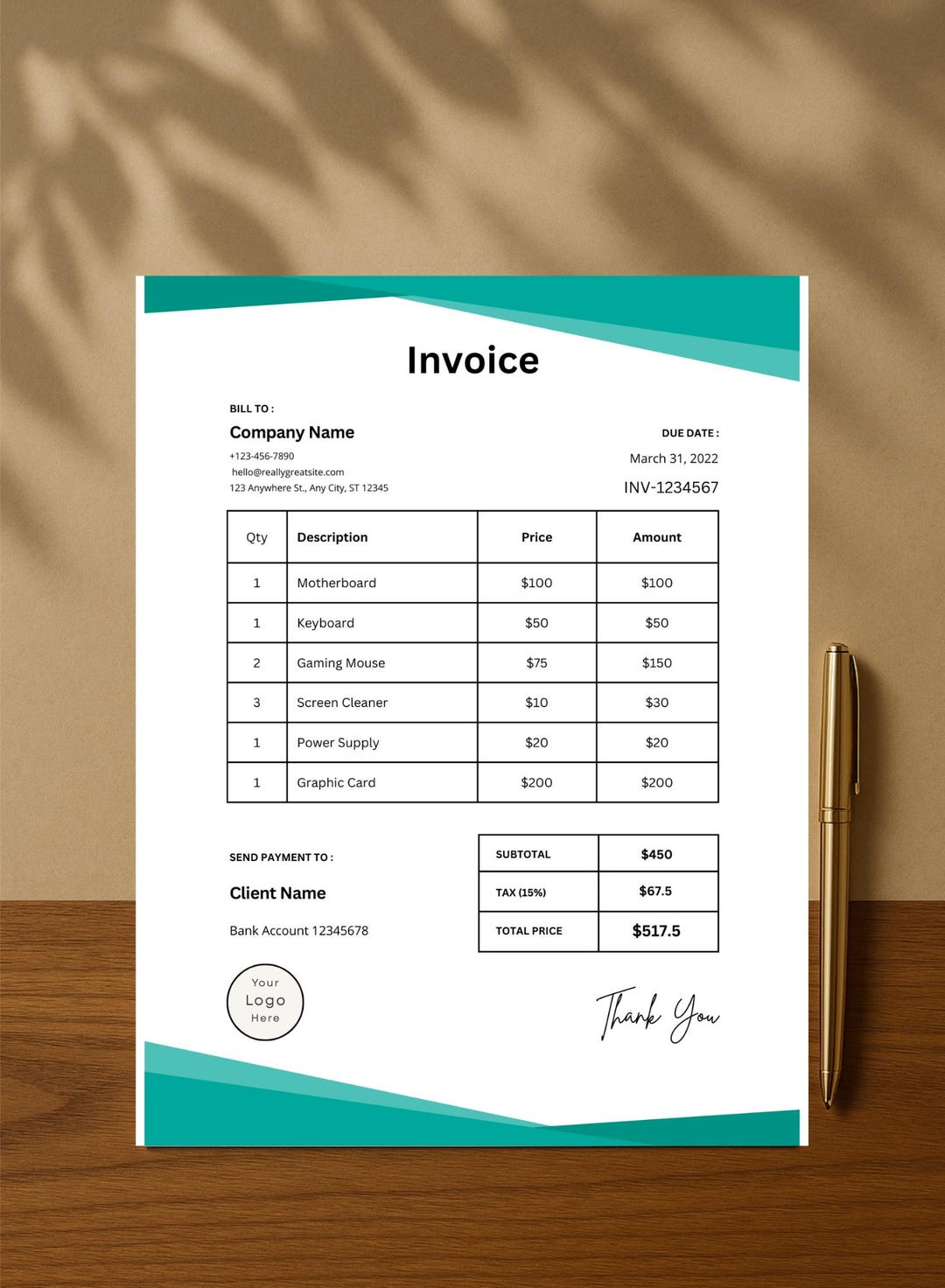 Custom Invoice Template, Invoice Word Template, Invoice Template Google ...