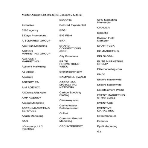 Master Promo Agency List | PDF