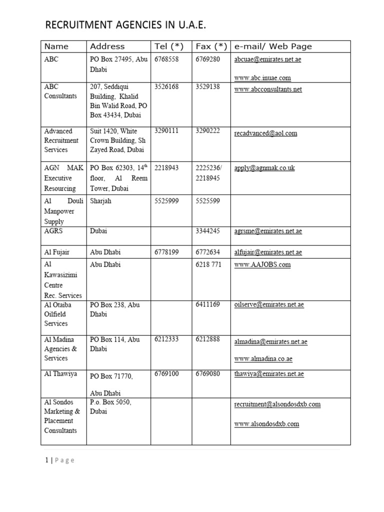 UAE Agencies List | PDF