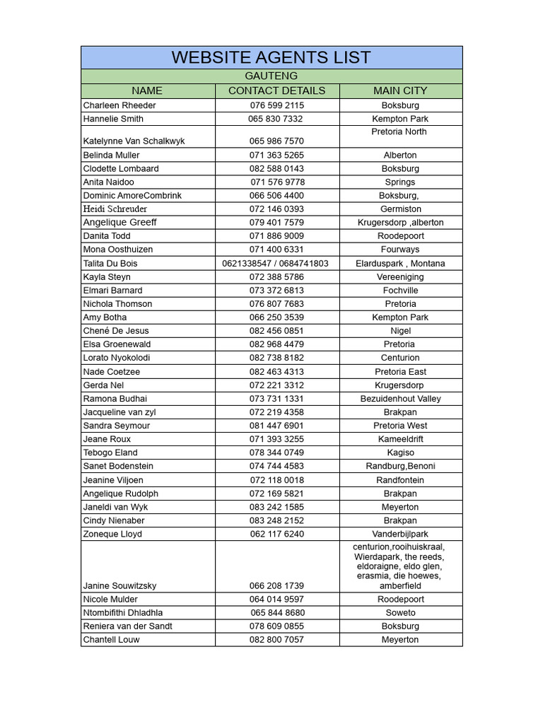 Agent Contact List | PDF