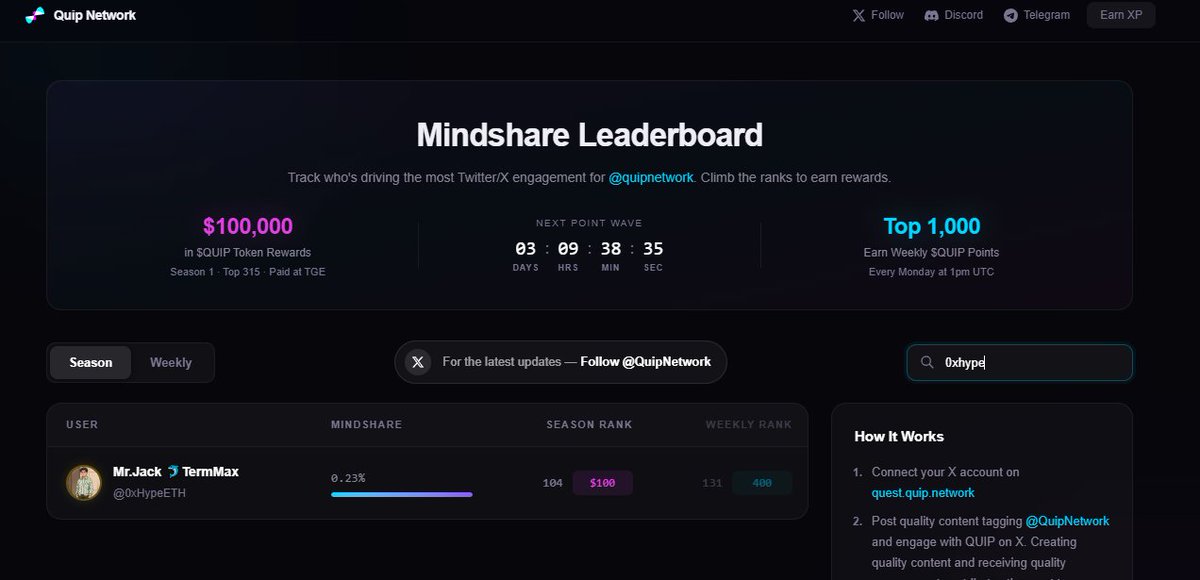 Continuing to support the @quipnetwork project My goal is to reach the ...