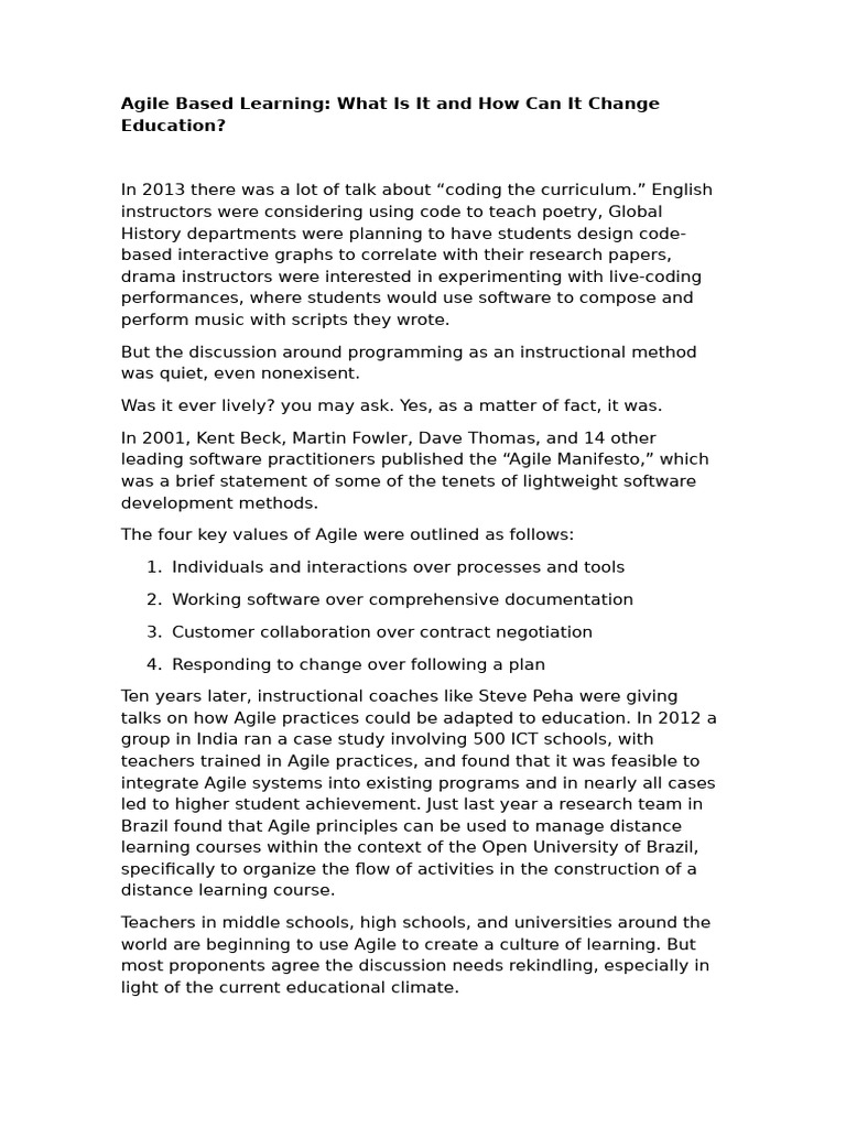 Agile Based Learning - What Is It and How Can It Change Education | PDF ...