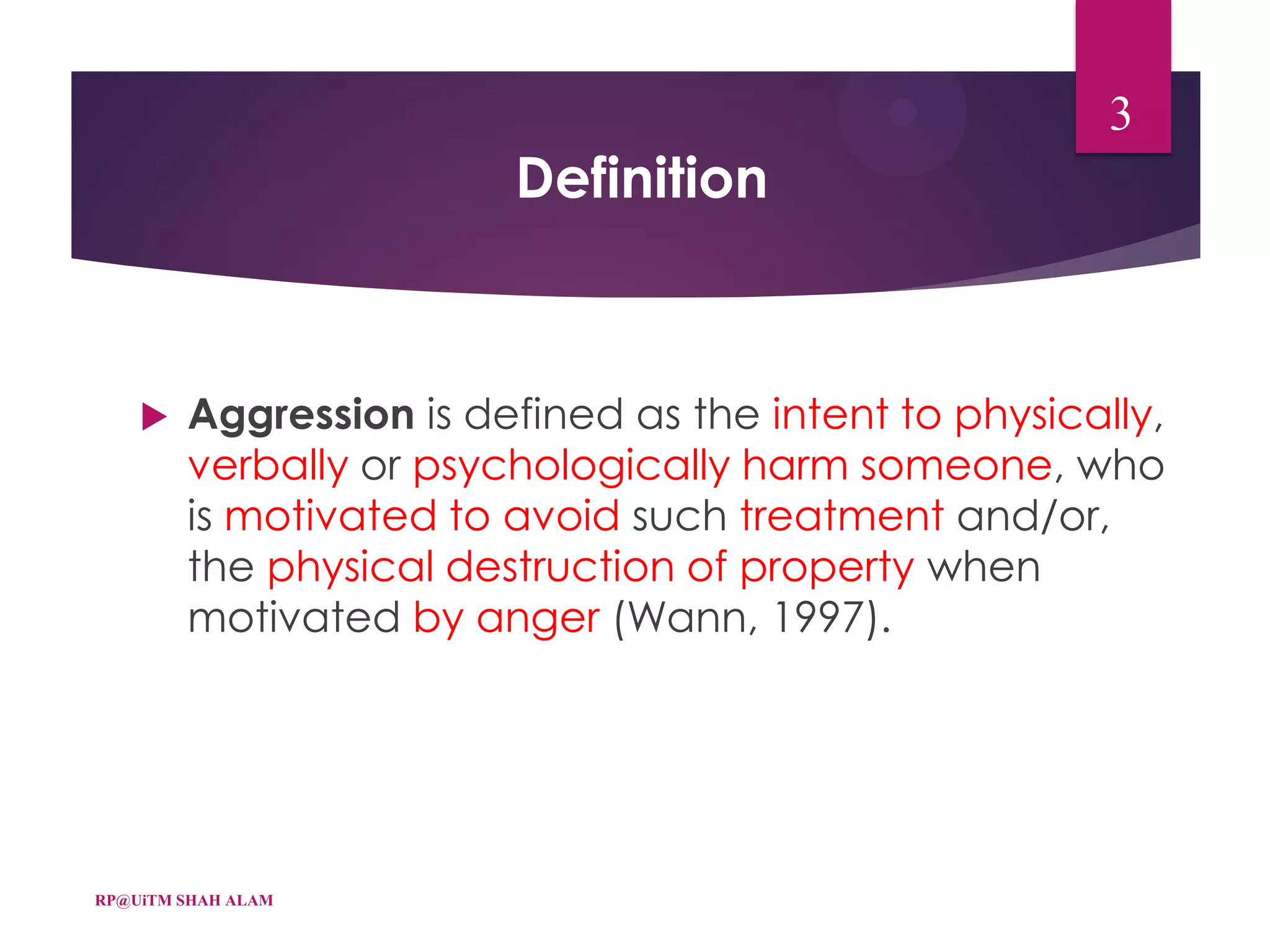 (PPT) Aggression. definition focus on harm not pain can cause pain ...