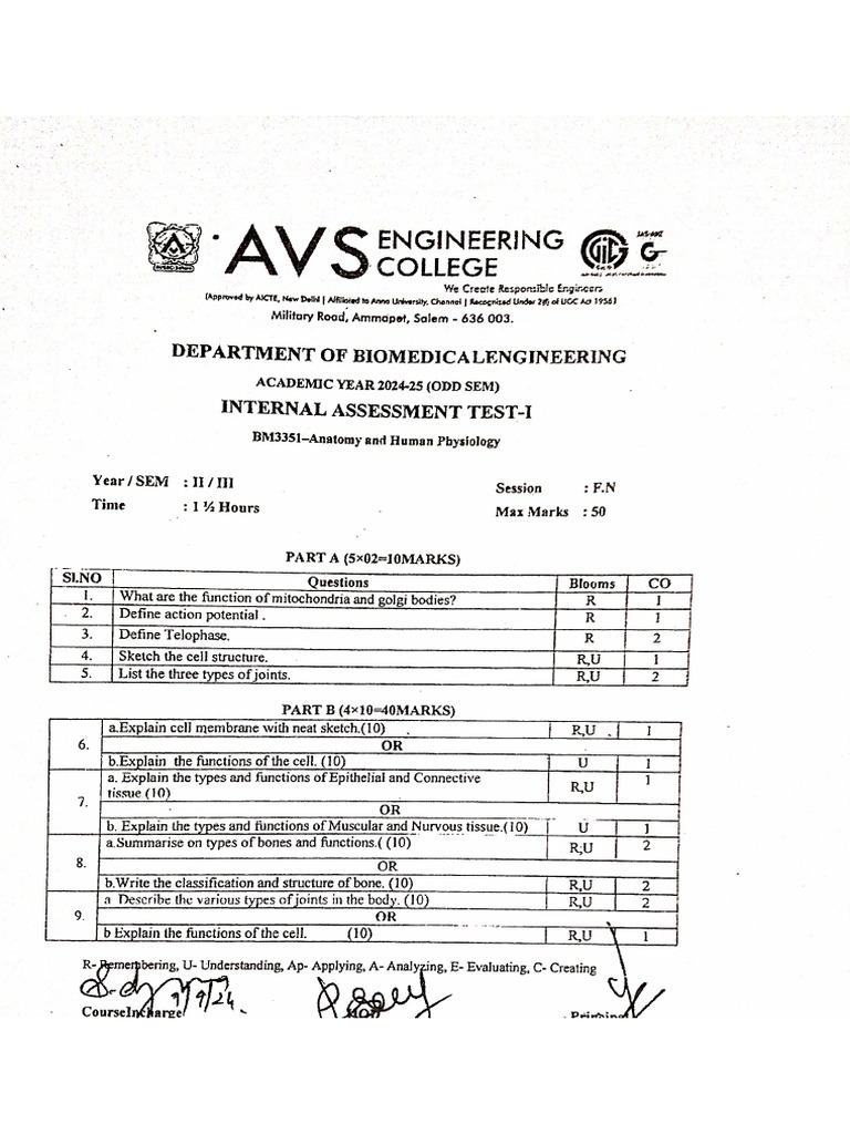 AHP UNIT 1 QB - AHP QUESTION BANK - ANATOMY AND HUMAN PHYSIOLOGY ...