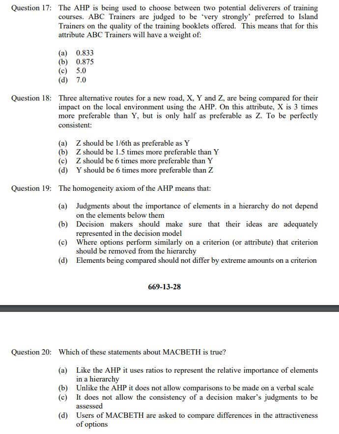Solved Question 17: The AHP is being used to choose between | Chegg.com