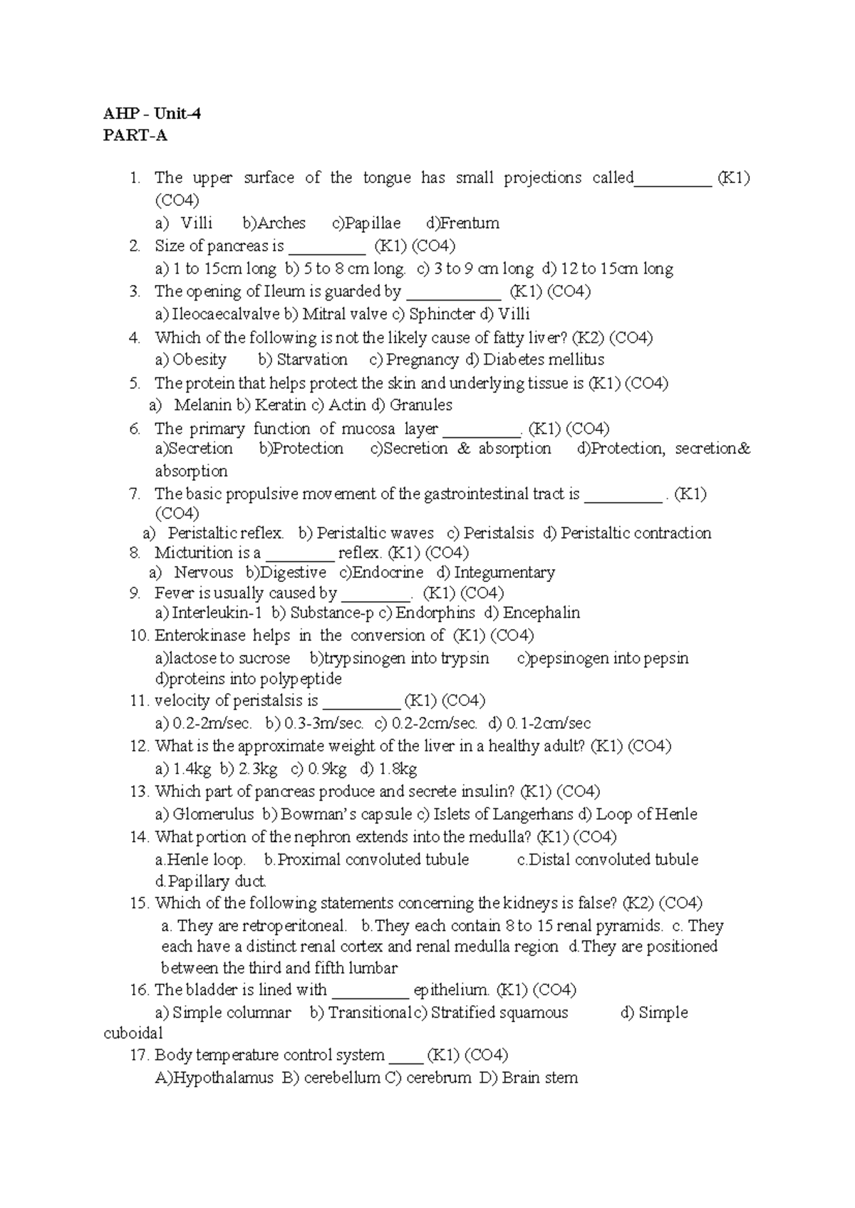 AHP Unit 4 Question Bank - Key Concepts & Quiz Questions - Studocu