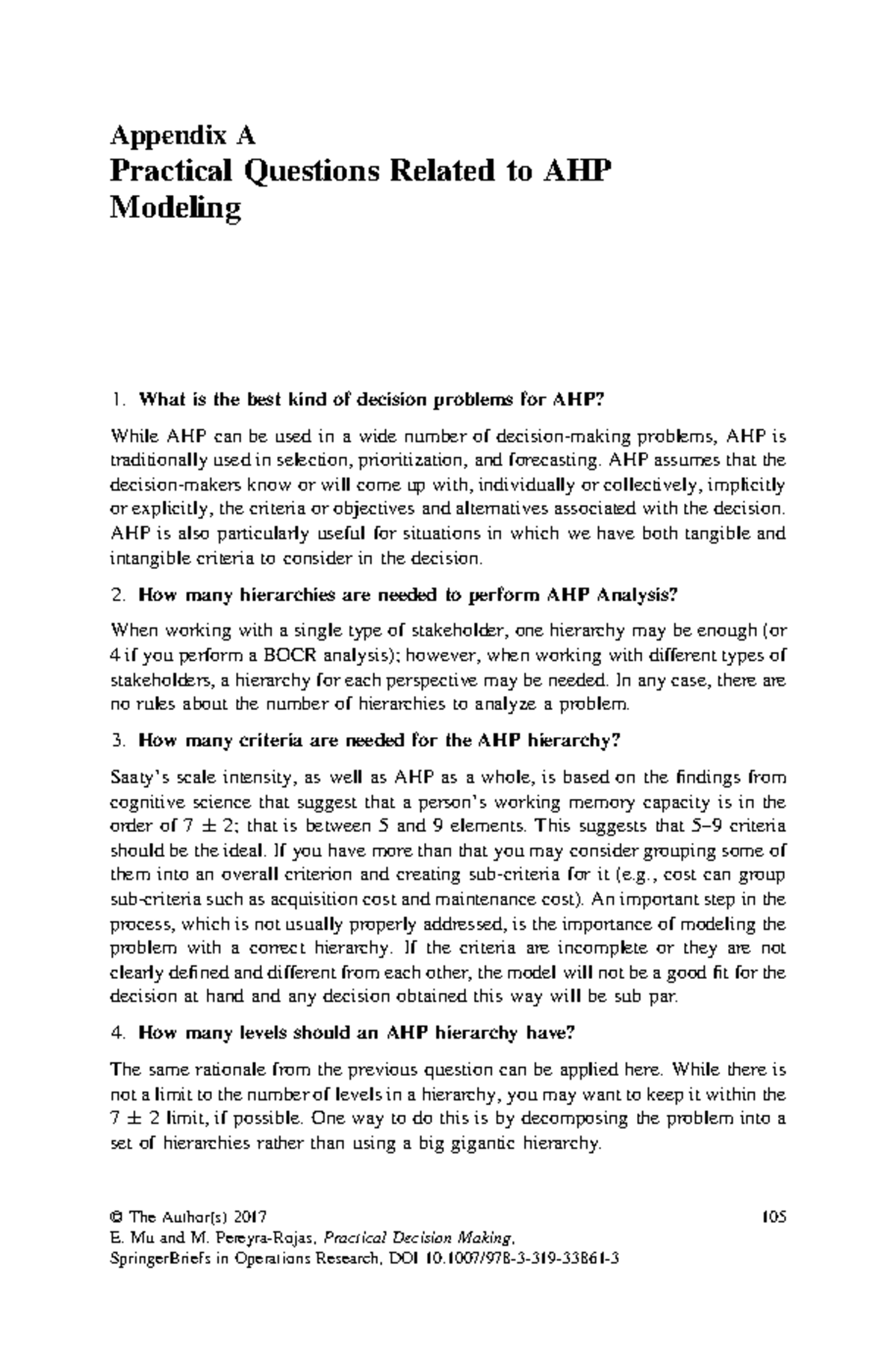 Practical Questions Related To AHP Modeling: Appendix A | PDF ...