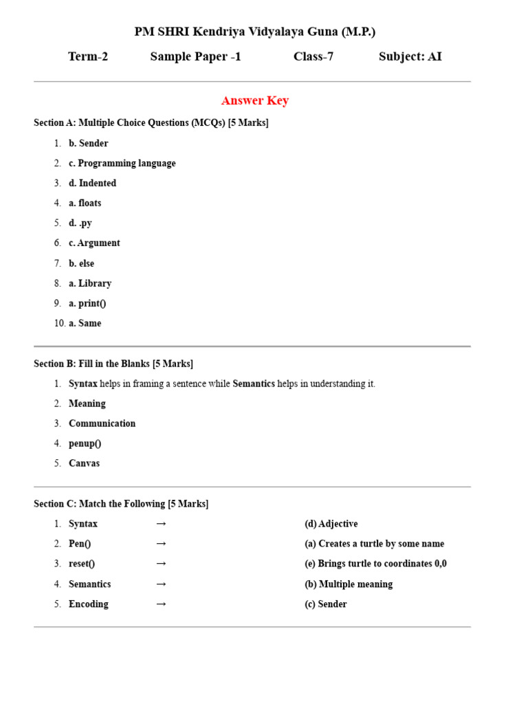 Ai Answer Key 7 Sample Paper-1 | PDF | Python (Programming Language ...