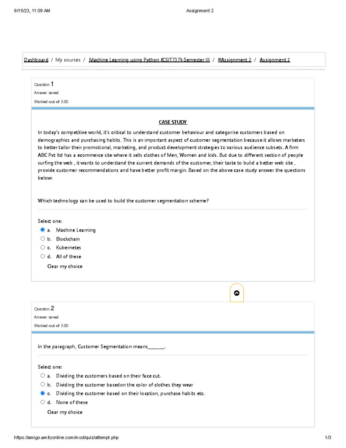 Case Study Assignment 2 (15 of 15 Marks) Machine Learning using Python ...