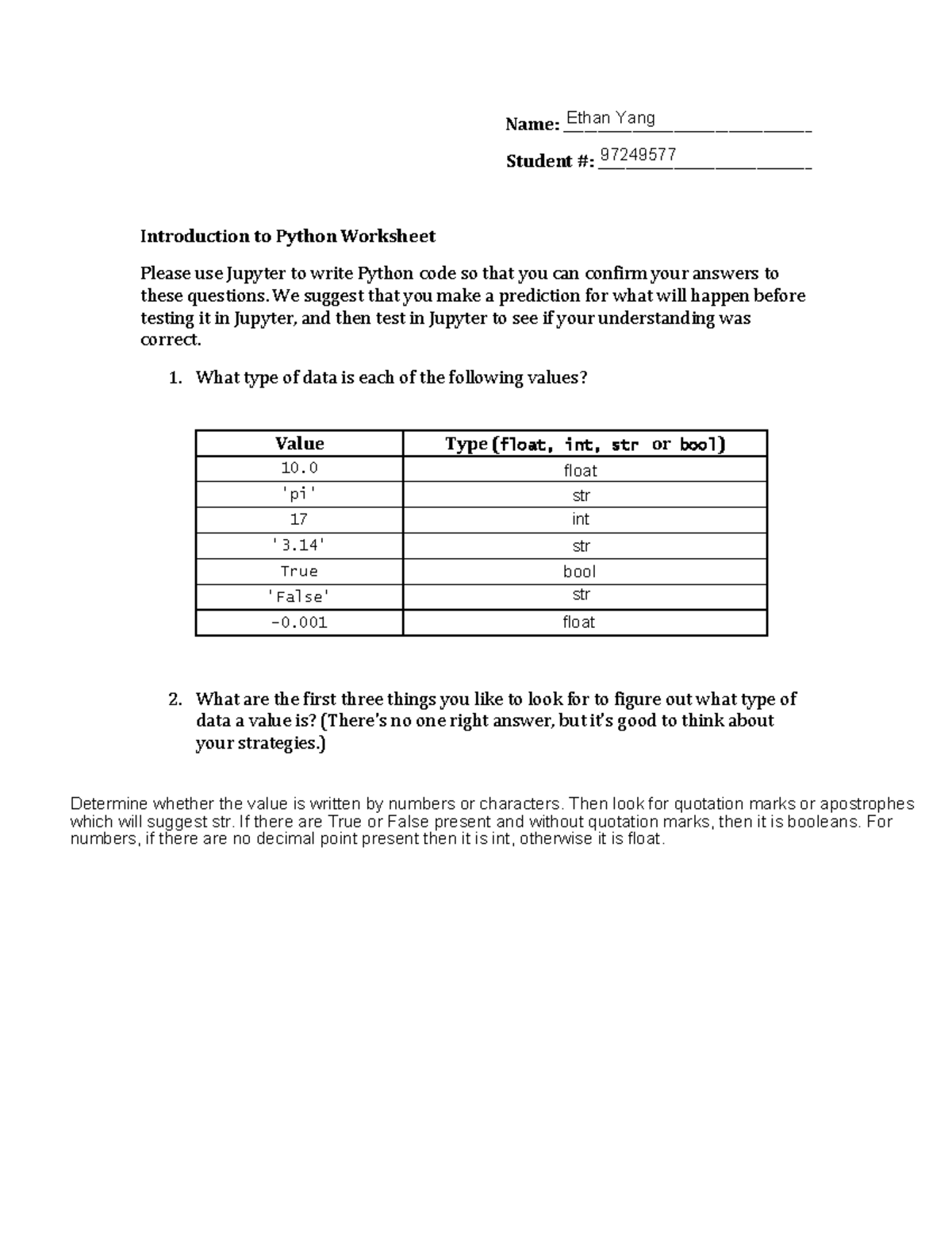 Intro to Python Worksheet (Course Code: 97249577) - Studocu