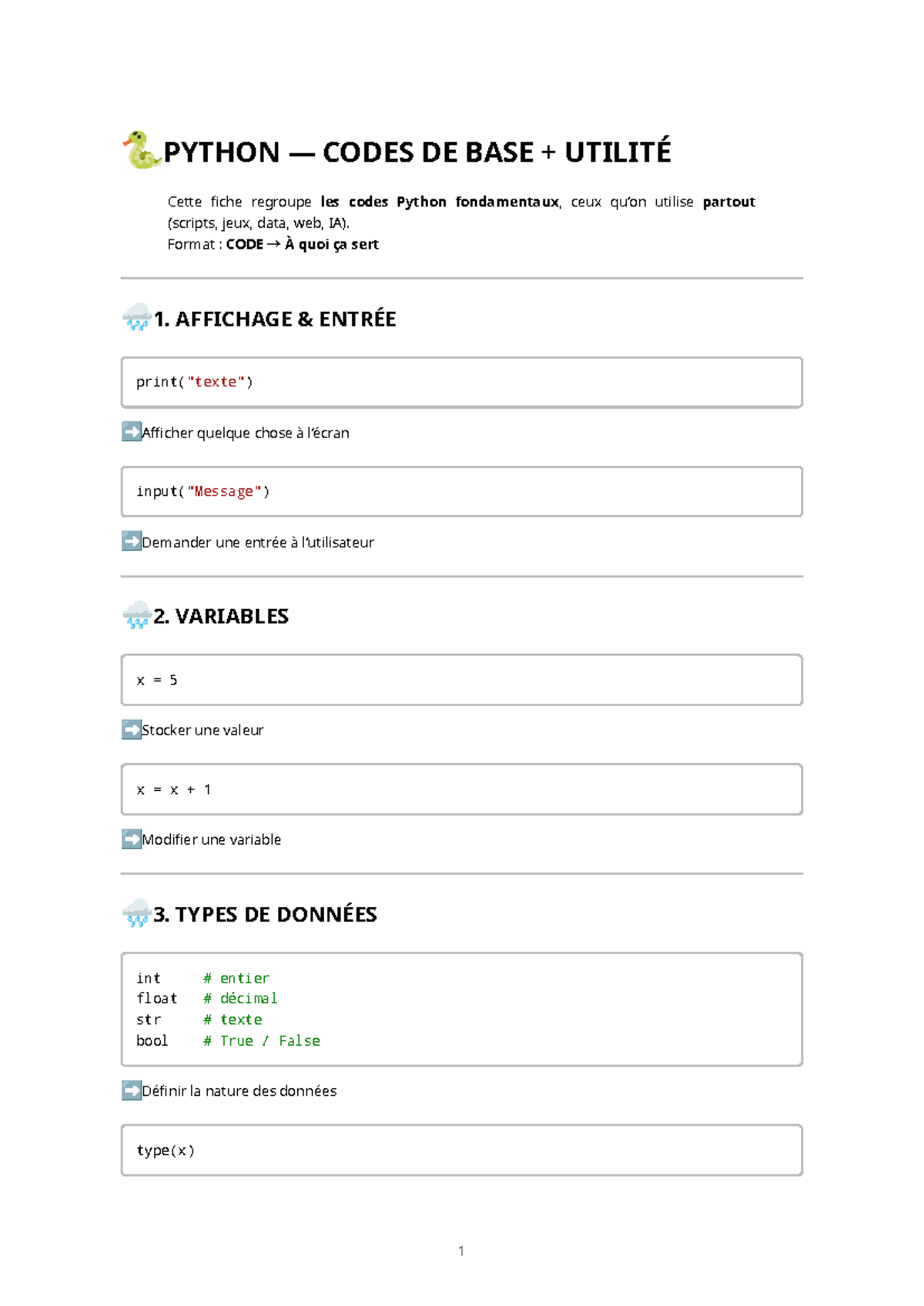 Python 101: Codes de Base et Leur Utilité - Studocu