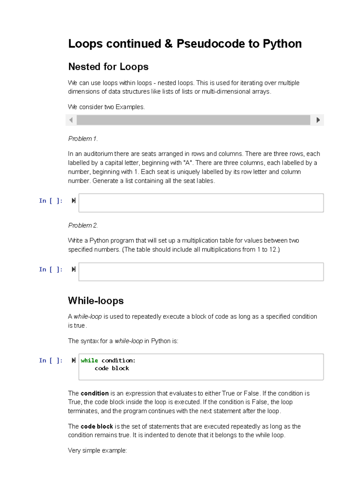 Lecture 7 - Nested Loops & Pseudocode to Python Concepts - Studocu