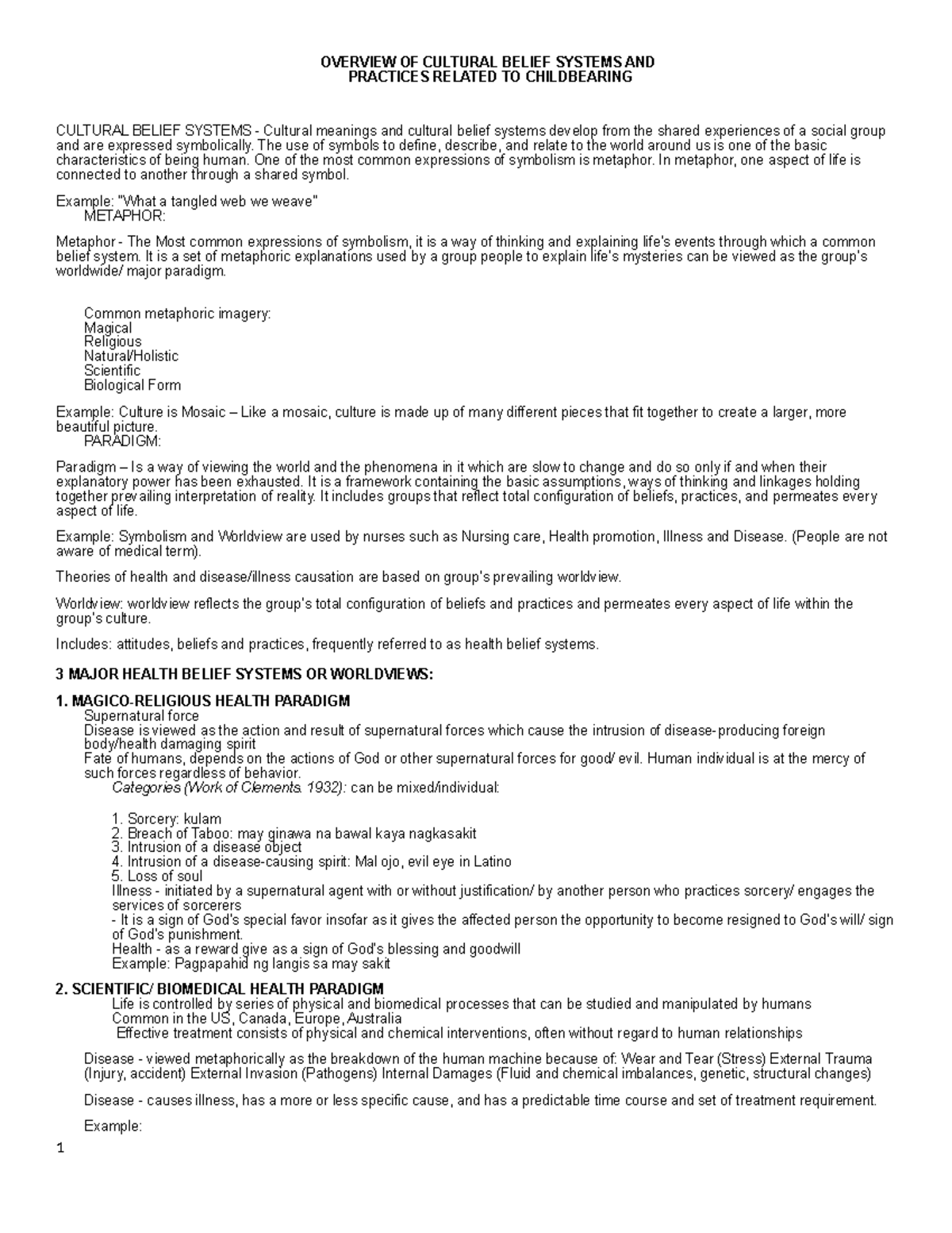Cultural Belief Systems in Childbearing: An Overview (Course Code: NURS ...