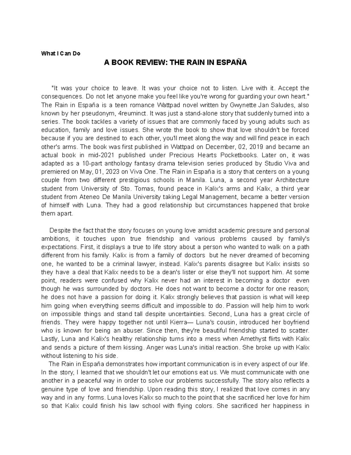 BOOK REVIEW: THE RAIN IN ESPAÑA (Course Code: España-1) - Studocu