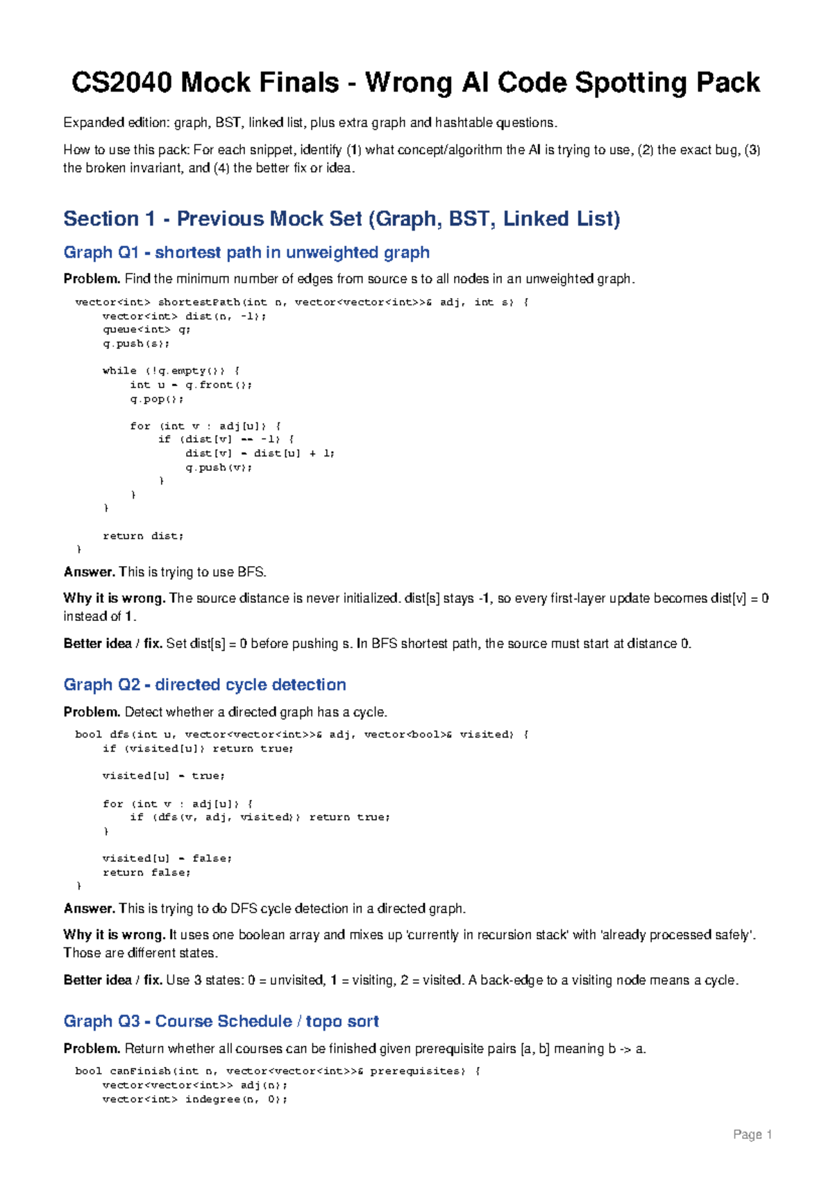 CS2040 Mock Finals Expanded: AI Code Bug Spotting Guide - Studocu