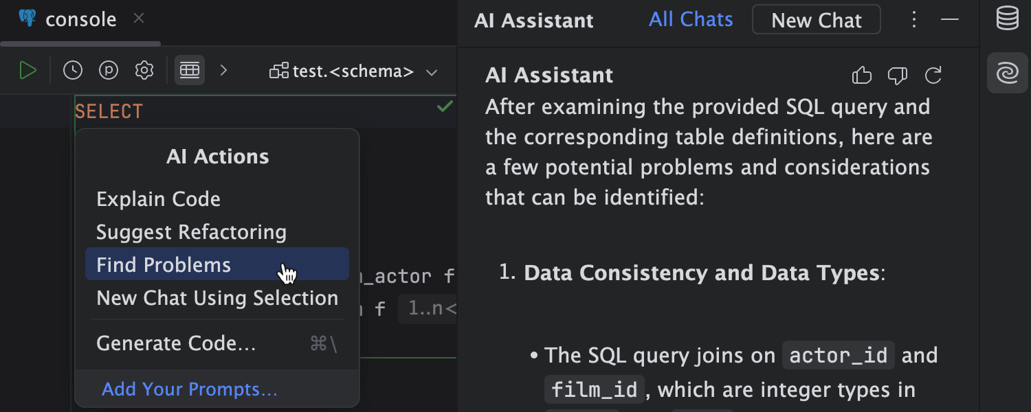 Use AI Assistant in DataGrip | AI Assistant Documentation