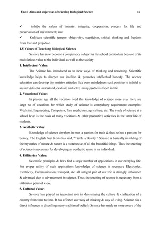 Unit i aims and objectives of teaching biological science | PDF