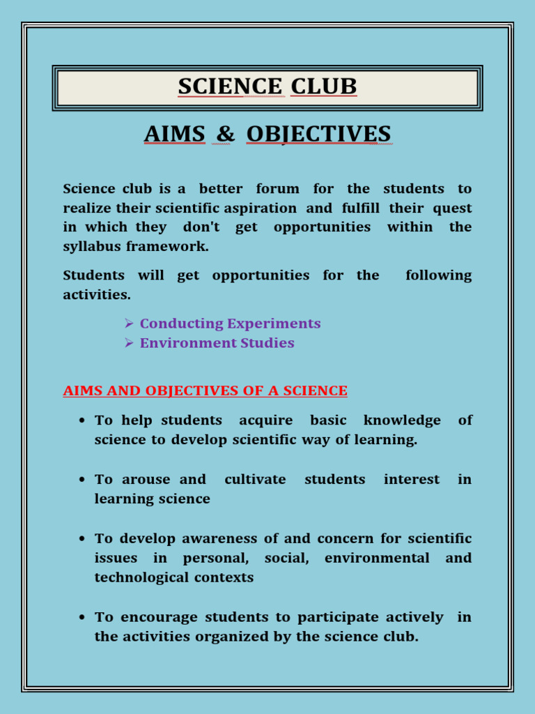Science Club Aims and Activities | PDF
