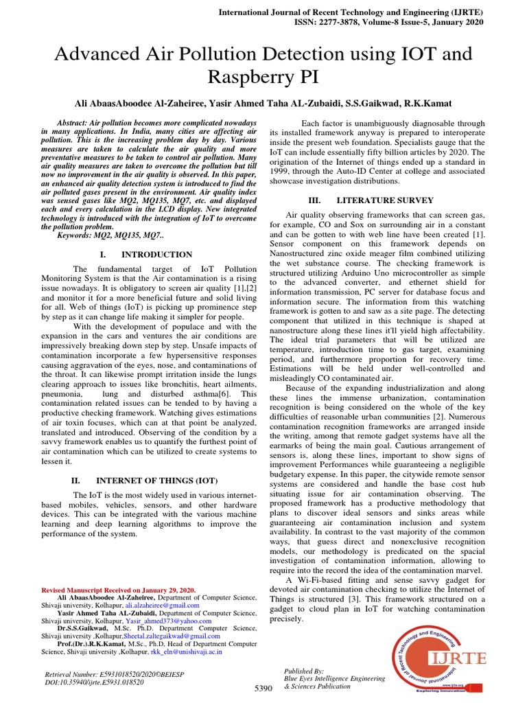 Advanced Air Pollution Detection Using IOT and Raspberry PI | PDF ...