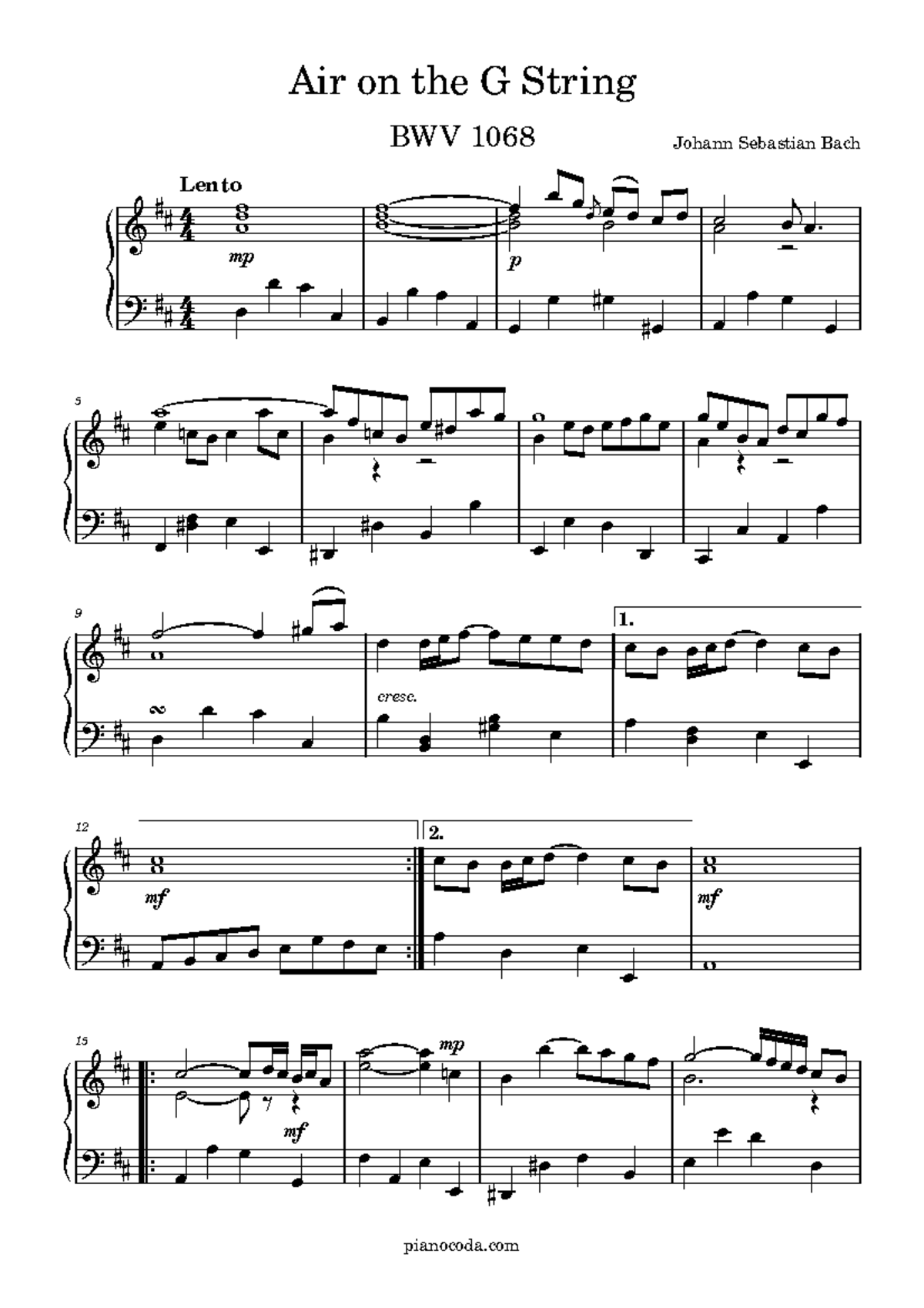 Air on G String - sadofef - BWV 1068 Johann Sebastian Bach Air on the G ...