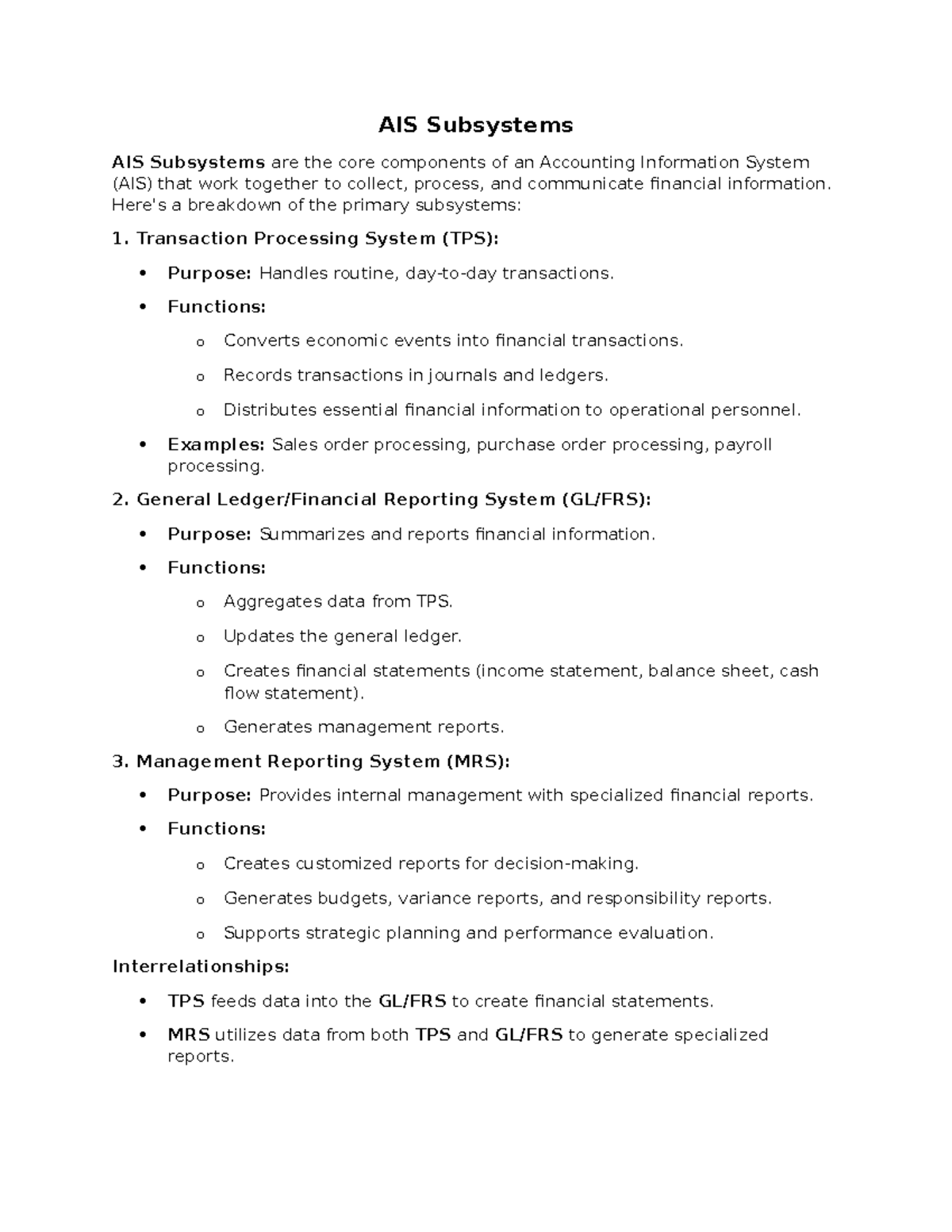 AIS Subsystems Overview: Key Components of Accounting Info Sys - Studocu