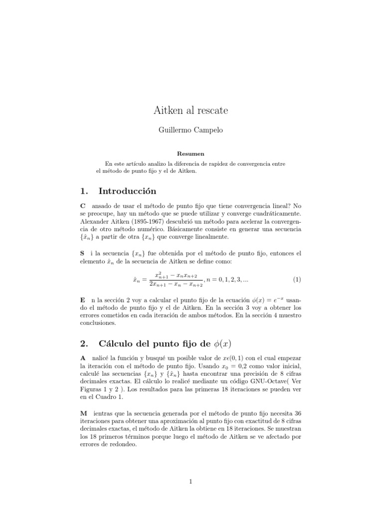 Aitken's Method for Convergence Acceleration | PDF | Numerical Analysis ...
