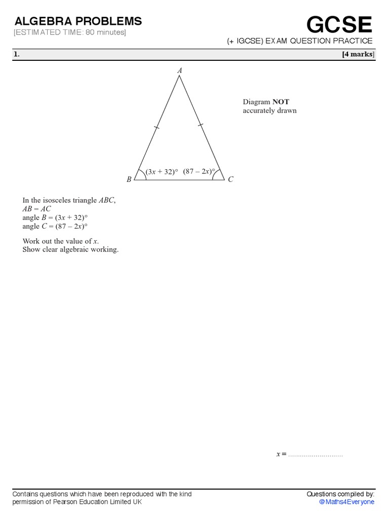 GCSE Algebra Exam Practice Questions | PDF | Area | Rectangle