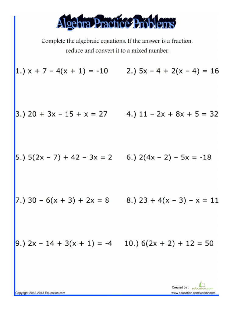Algebra Practice Problems - Master Your Skills with Exercises and ...
