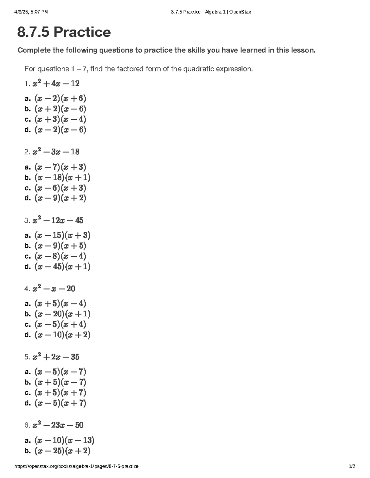 8.7.5 Practice Problems for Algebra 1 - OpenStax - Studocu