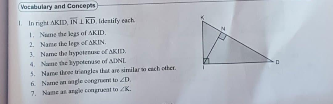 Solved Vocabulary and Concepts 1. In right AKID, IN 1 KD. | Chegg.com