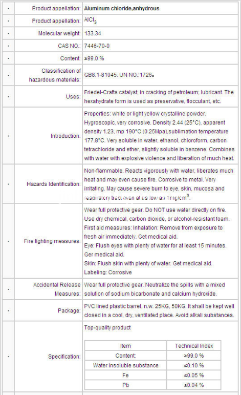 Aluminium Chloride Anhydrous AlCl3 China Manufacturers Suppliers ...