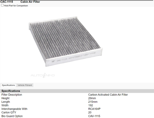 Ryco Cabin Air Filter for Toyota RAV 4 ACA 31 36 ACA38R ALA49R ASA44R ...