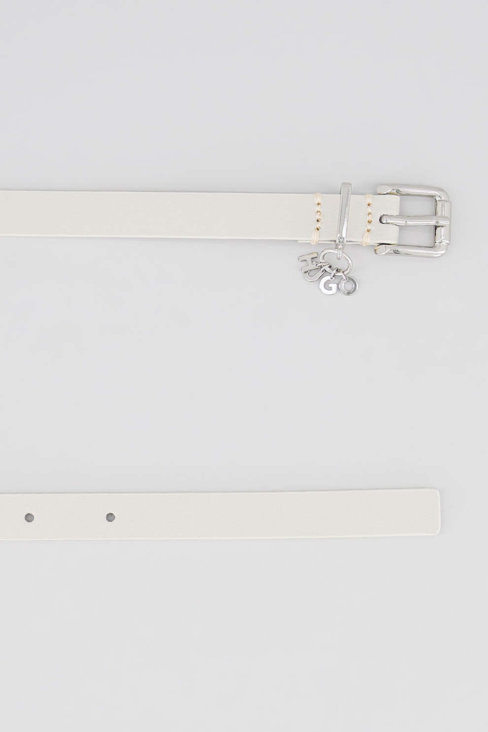 HUGO, Curea skinny de piele cu accesoriu logo, Alb fildes, 95 - eMAG.ro