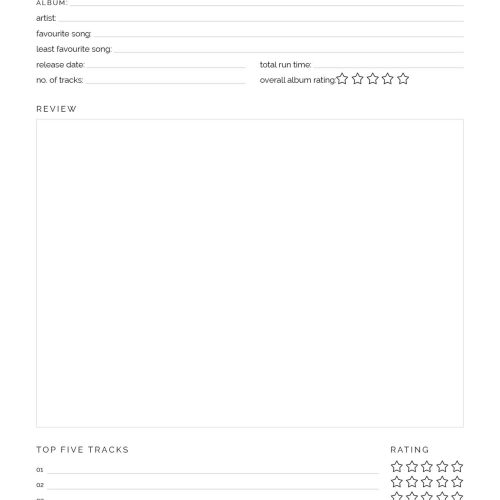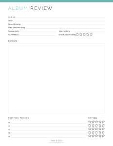 Album Review Template | Printable AT A GLANCE