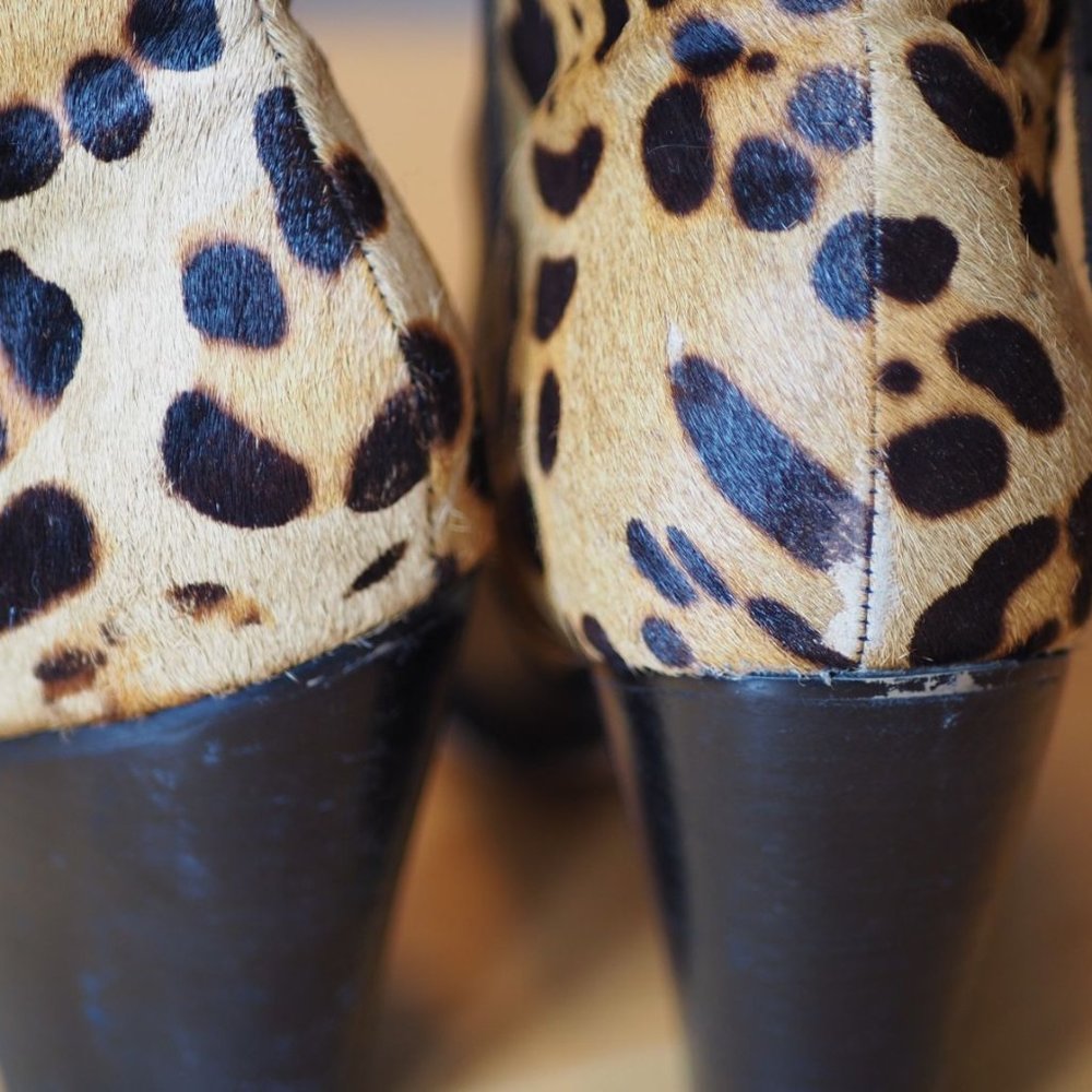 Aldo Leopard Print Black Leather Ankle Booties 8.5 - Gem