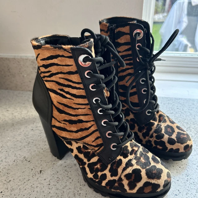 LADIES WOMENS ALDO Animal Print Heel Suede Ankle Boots Size 5.5 EU 38.5 ...