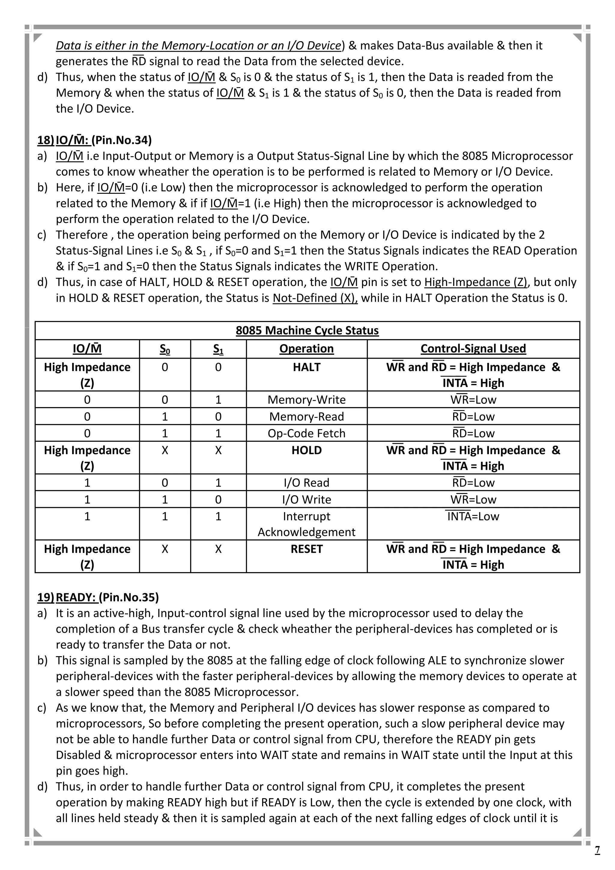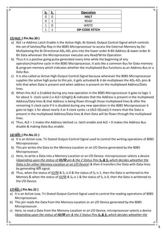 Detailed Explanation of Pin Description of 8085 microprocessor | PDF