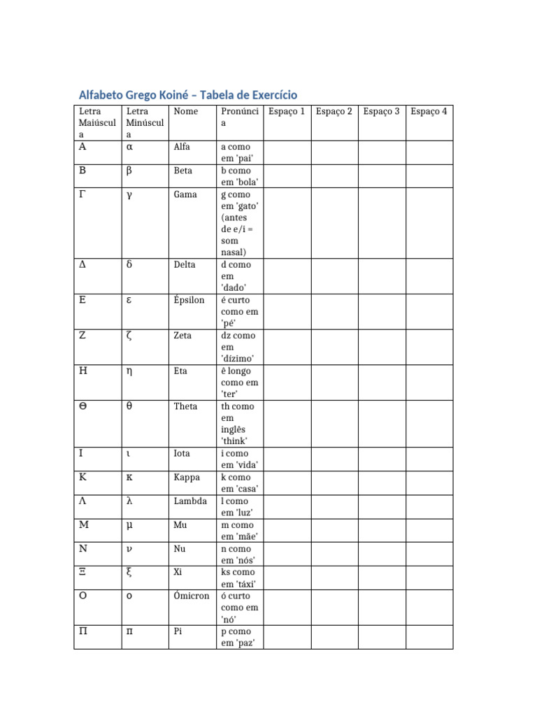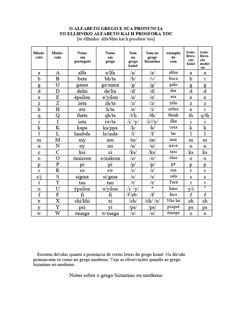 Tabela Alfabeto Grego Koine | PDF | Alfabeto Grego | Grafemas