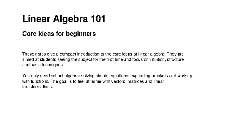 Linear Algebra 101: Core Concepts for Beginners - Studocu