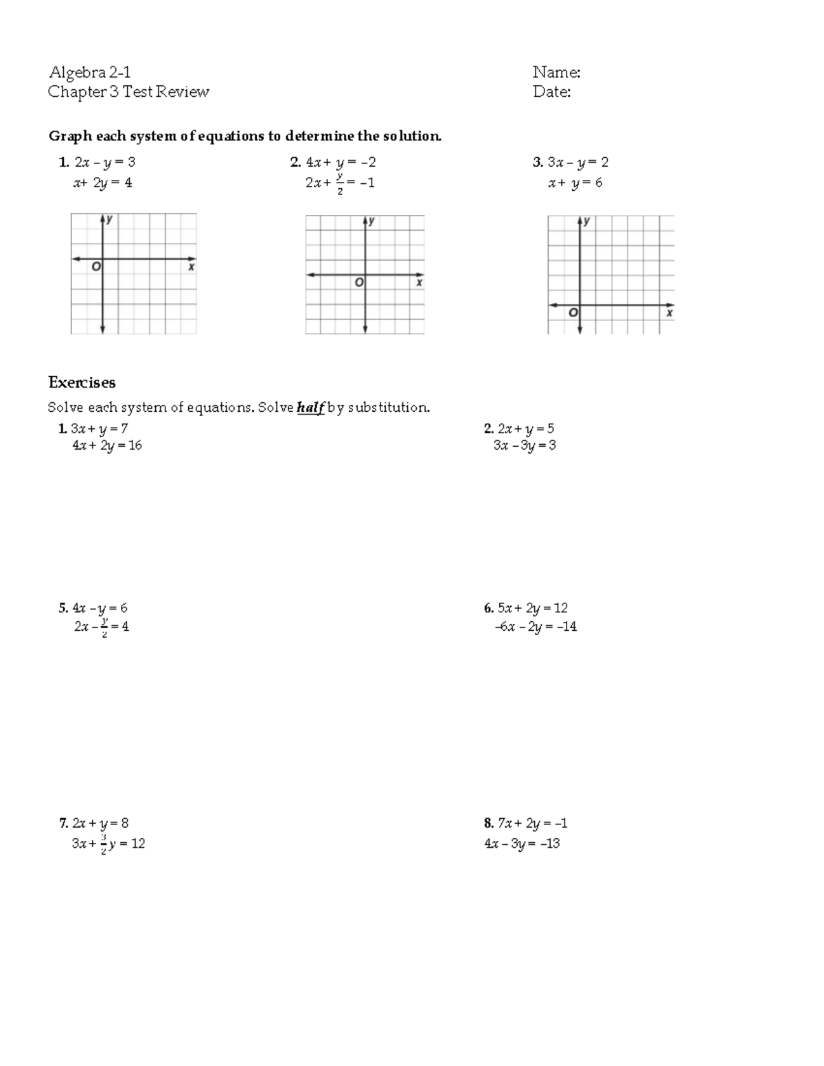 Algebra 101: Chapter 3 Systems Test Review Guide - Studocu