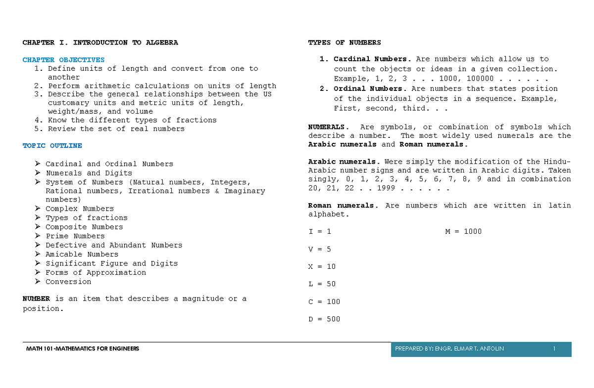 MATH 101: Fundamentals in Algebra - Chapter I Overview - Studocu